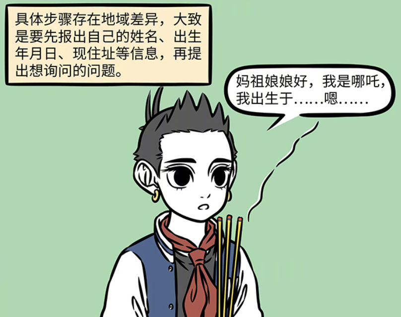 那么要若何掷杯筊呢?简短措施即是要先报出我方的姓名、出身年月日、目下的住址等等信息,再冷漠念念要参谋的内容。哪吒倒是有点礼数,也说出了我方的姓名。然则哪吒健无私方是什么期间出身,这就有点难搞。