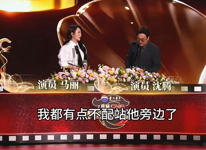 比如沈腾自嘲不配站在马丽身边,因为马丽刚刚赢得了“年度笑剧女演员奖”,而马丽则辱弄“看你离座,合计你也获奖了呢”。