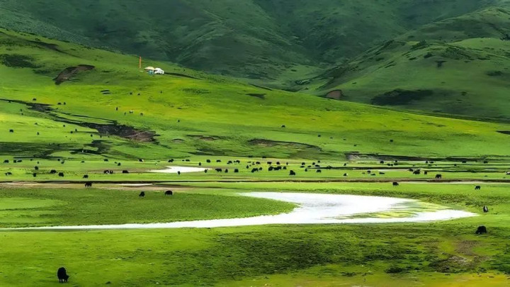 连绵的绿浪蔼然滚动,像被风揉皱的丝绸。绿毯般的草甸上,野花零脱落散摇曳,追着风在小溪边打滚,在灌木丛旁撒泼,每一帧齐是电影画面!累了就躺平,看云朵慢悠悠地途经,寰宇间只剩草香与虫鸣——所谓“舒坦东谈主生”,不外如斯吧~