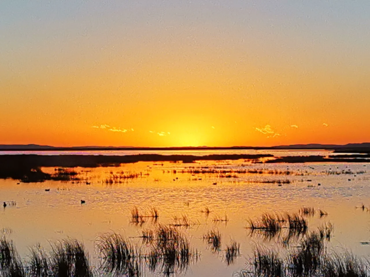 踱步花湖,枕黄河涛声,夕阳把牧归的身影拉长,看湖水和太空在绝顶调治相拥,染成一派醉东谈主的金红。湖边上的栈谈,边那攻击的栈谈,仿佛一条通向太空绝顶的路线,任云卷云舒。