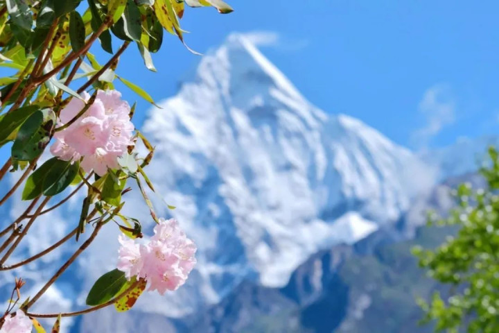 潜入景区,数十处冰碛湖点缀其间,最壮阔的“措琼神海”静卧其中。待到七月下旬,湖岸峻岭杜鹃盛放,落花轻覆岩岸,碧水似锦相映,好意思不堪收。