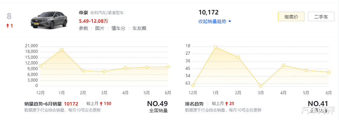 于破钞者而言,车企之间的价钱战越浓烈,用户就不错通过低廉的售价不错买到质地、体验皆过关的家具。以最近更新的帝豪为例,经销商报价仍是下探到了5.49万元,6月销量也达到了10172辆,在紧凑型车中也算名列三甲。