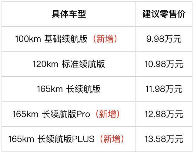 蓝电E5 PLUS在之前预售的蓝电E5 PLUS 120Km 法子续航版和蓝电E5 PLUS 165Km 长续航版两款上新增多了蓝电E5 PLUS 100km基础续航版、蓝电E5 PLUS 165km长续航版Pro和蓝电E5 PLUS 165km长续航版PLUS三款,价钱别离为9.98万、12.98万、13.58万,蓝电E5 PLUS在作念到了价钱依旧实惠的同期还欢娱了耗尽者多元化的经受。