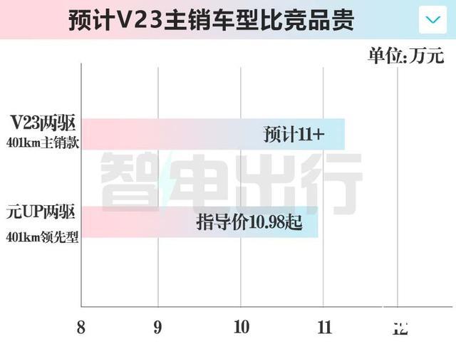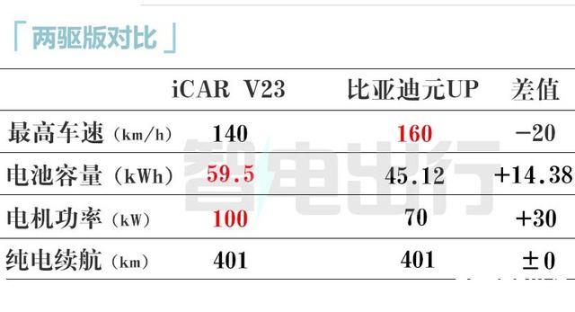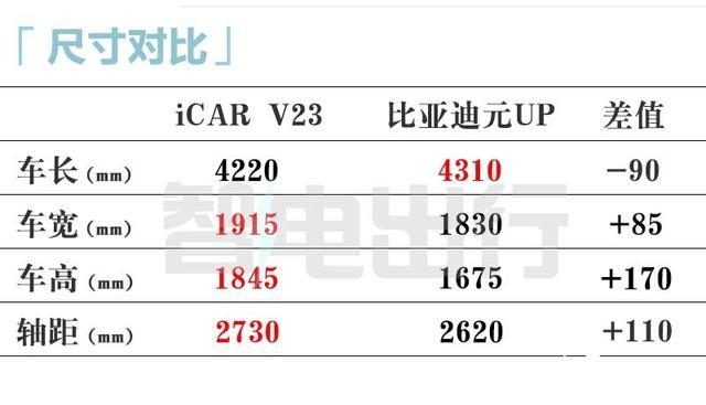 从iCAR V23家具调研来看,其主要竞品为比亚迪元UP,在续航和建立终点下(400km 两驱),V23价钱可能比10.98万高;501km四驱车型售价或高于14万元。