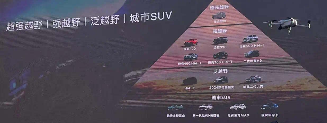 “泛越野”这个词是笔者很久之前就提过的,当初主要用于评价带有四驱系统的SUV;比如比亚迪唐DM-p、Jeep目田光旗舰版、配备S-AWC系统的三菱欧蓝德,冒失配备TwinClutch系统的通用汽车。这张图片里的“超强越野”不错合股为疾驰G级、乌尼莫克等车,传说坦克汽车以后也会推出相应的车型。强越野在图片中对应的是坦克300/400/500/700和哈弗H9,光显指的是选拔非解耦四驱系统的越野车。