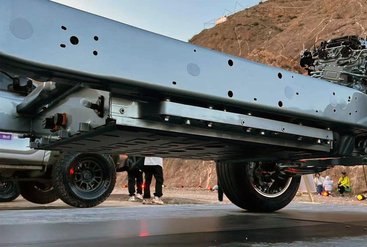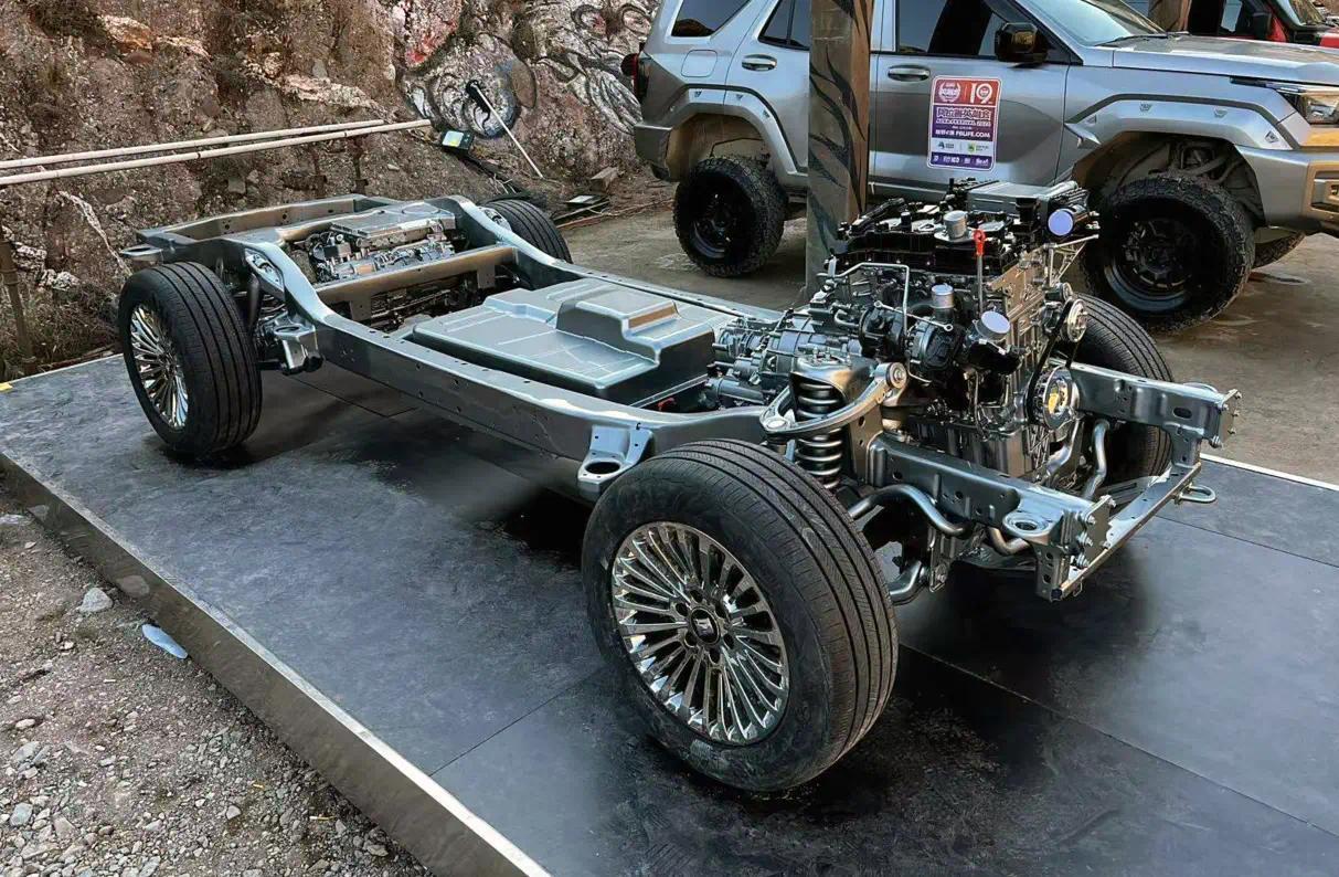 意旨的是豹5选拔的比亚迪DMO系统亦然这种四驱平台,况兼也齐是有”大梁“(非承载式)的车身。