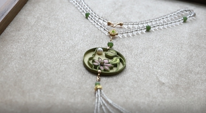 在她的巧手之下,盘扣不再仅仅服装的一部分,而是形成了项链、耳饰等雅致的首饰,以至还不错作念成遮挡画。“凤穿牡丹”“廉明”“金缕玉衣”……每一件作品不仅充满了艺术气味,背后还赋予了文化内涵。张春梅先容:“‘金缕玉衣’ 的运筹帷幄灵感开头于《唐诗三百首》中的临了一首古诗《金缕衣》,有着‘劝君莫惜金缕衣,劝君惜取少年时’的寓意;作品‘廉明’的出处是《爱莲说》,赞赏莲花 ‘守身若玉,濯清涟而不妖’。”有付出就有得益,张春梅的作品“金缕玉衣”曾在中英外洋文化艺术展上被评为二等奖。