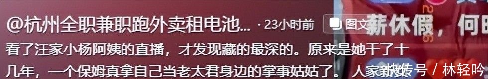 故事的伏笔始于农历新年刚过。小杨大姨迟迟未返台北汪宅复工,集合公论随之赶快发酵。有声息直言她已被解聘,情理直指过往屡次借汪家渊博话题引流变现,不时暴露微妙细节,屡次激励舆情反噬。