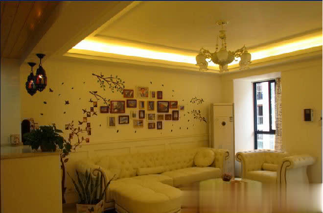 这里许多小东西齐是网购的哦,像相片墙、贴纸,还有吧台灯,呵呵,我是颜色控,是不是有点花俏?