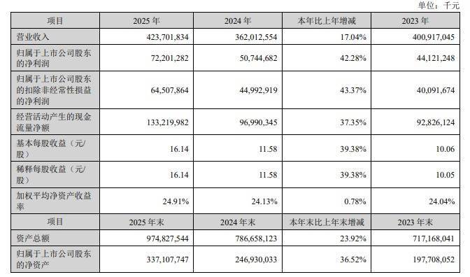 【大河财立方音问】3月9日晚间,宁德期间涌现2025年年度禀报。公司2025年结束买卖收入4237.02亿元,同比增长17.04%;包摄于上市公司鼓吹的净利润722.01亿元体育游戏app平台,同比增长42.28%。主义活动产生的现款流量净额1332亿元,同比增长37.35%。