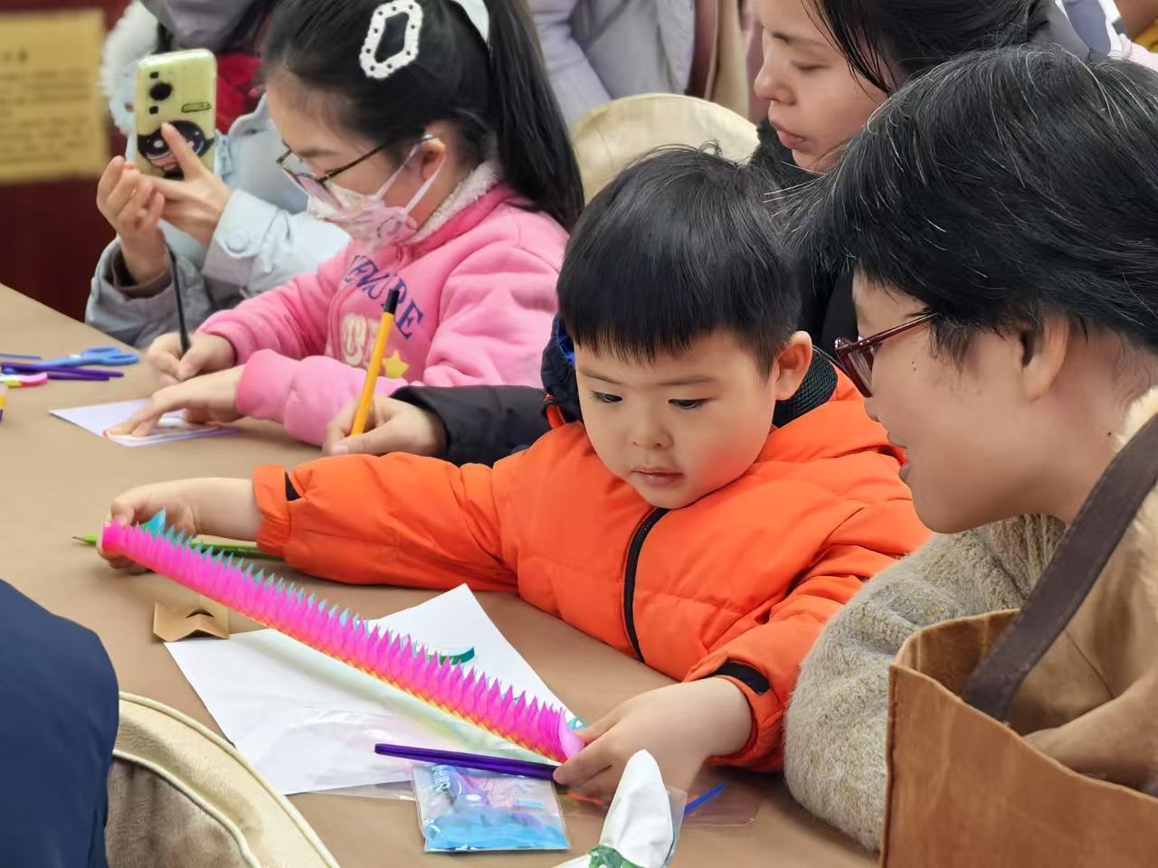 红似猛火、粉若云霞、黄像骄阳……色调明艳的纸翻花在孩子手中不休幻化,也勾起家长们的童年回忆。2月4日上昼,正月初七,百余东谈主在中国妇儿子童博物馆干与指尖似锦·非遗翻花趣享会,在亲子互动中体验非遗的魔力。